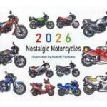 バイクブロスの連載企画「レトロバイク・グラフティ」で活躍するイラストレーター、藤原かんいち氏が製作したカレンダー「藤原かんいちの2026年版オリジナルイラストカレンダー(Nostalgic Motor ...
