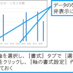 Excel Q&A ひと目で納得させるグラフ作成ワザ | 軸の編集に関するワザ Q:552 日付データの抜けをグラフに反映したくないときは A 軸の種類をテキスト軸に変更します 元の表で、横( ...