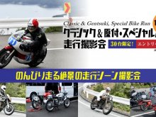 昨年試験的に実施し大好評だった、普段公道を走行できない歴史あるクラシックバイクやスペシャルバイク、さらに原付も参加可とした伊勢志摩スカイライン貸切の走行シーンを撮影するスペシャルな貸切走行撮影会です